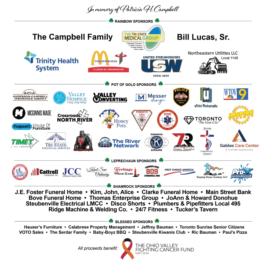 The Annual Pat Campbell Fighting Cancer 5K always held on St. Patrick’s Day weekend is one of the first, flattest, fastest, funnest, faith-filled, and greenest race/walk events of the year to help FIGHT cancer!